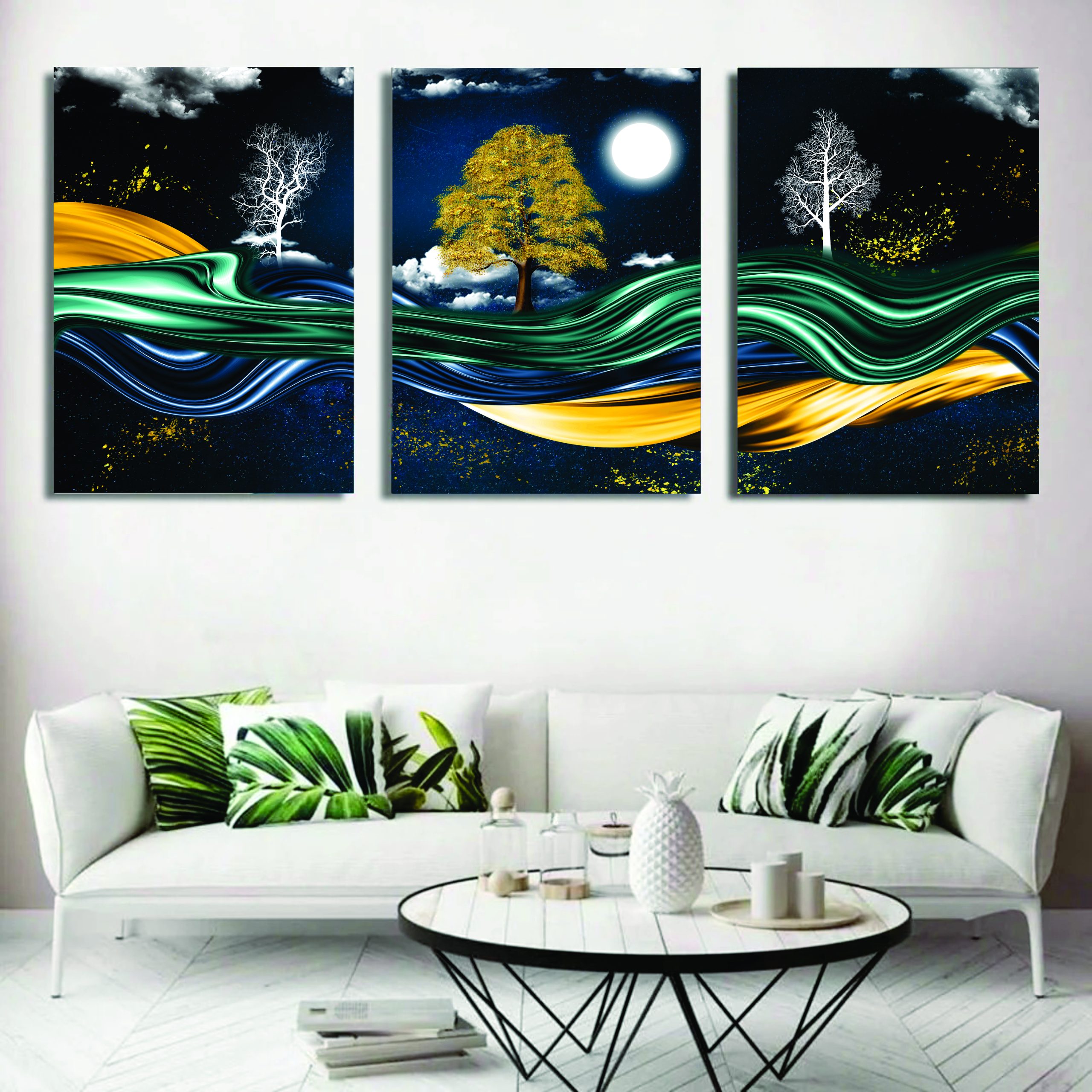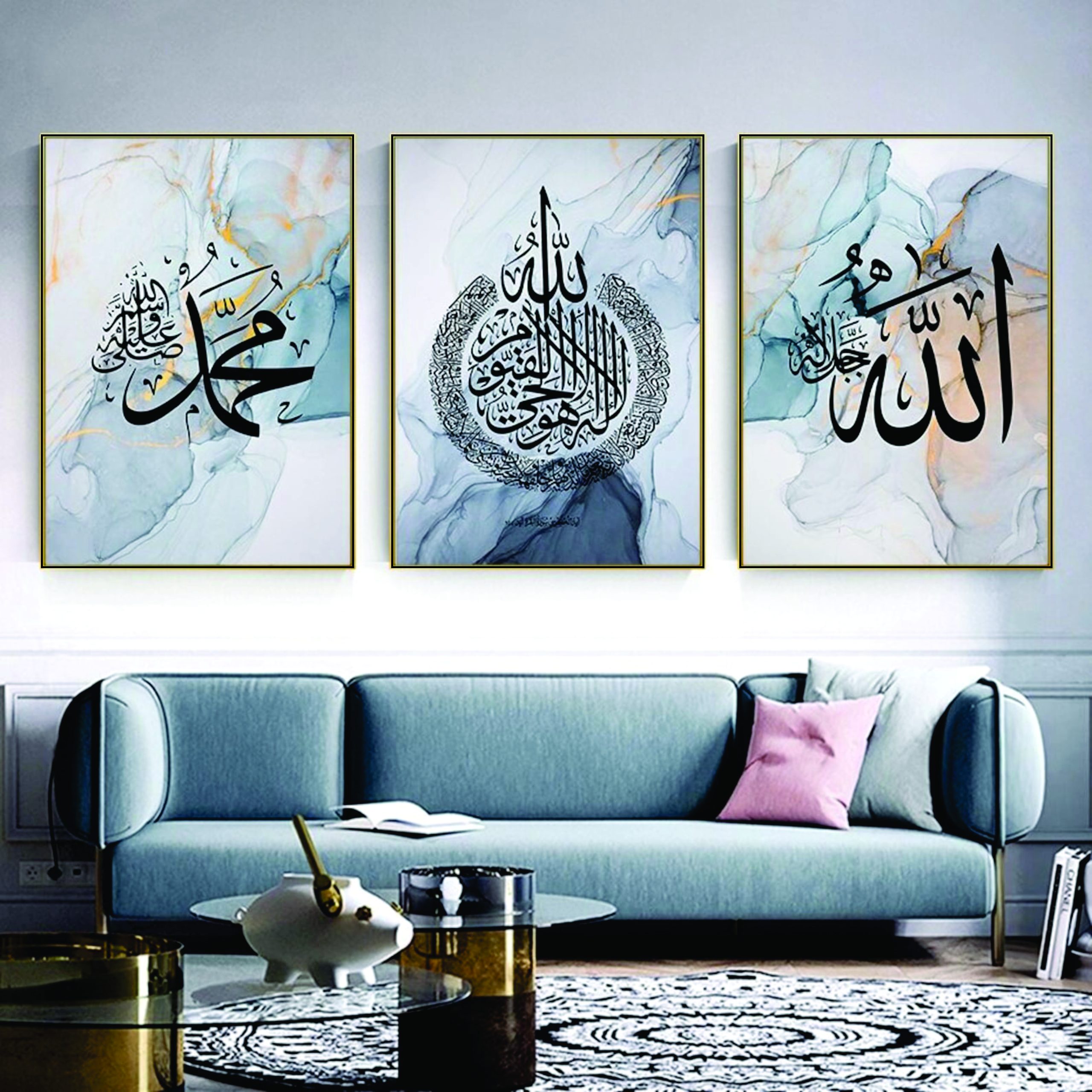 3 Marble Blue Islamic Wall Art Modern Arabic Calligraphy- Islamic Wall Decor
