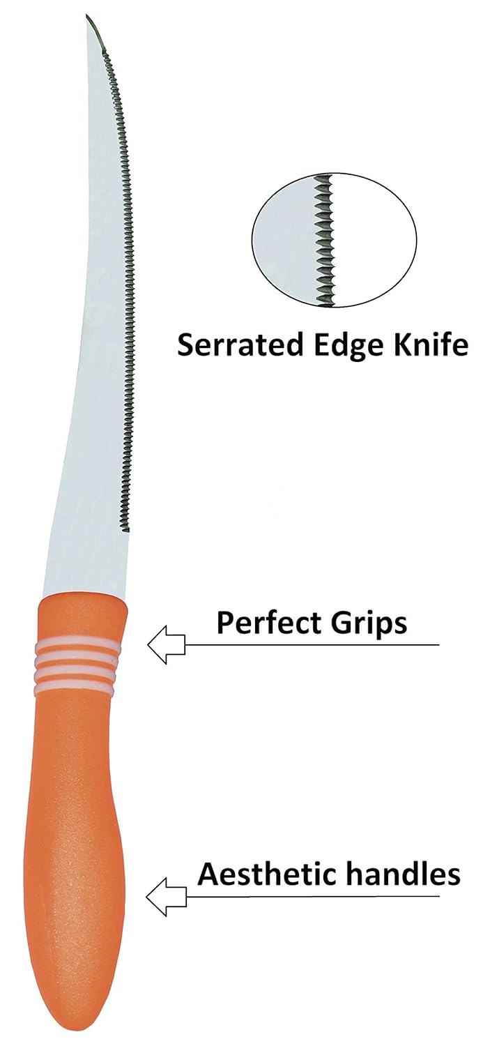 2 Pcs Concord Stainless Steel Kitchen Knife – Multipurpose Table Knife with Serrated Edge, 12 cm (Random color)