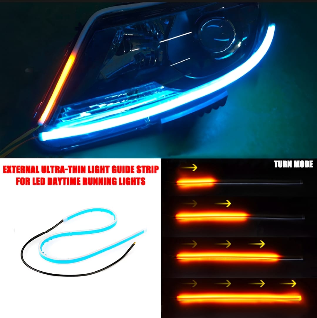 Dual-Mode Functionality – Bright white DRL (Daytime Running Light) for visibility and dynamic amber turn signal for enhanced safety.