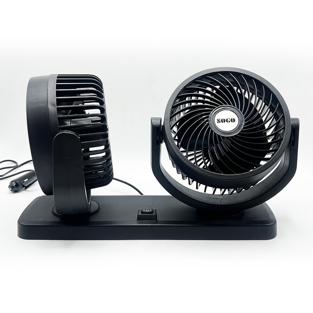 Stay cool and comfortable on the road with this Dual Head Car Fan. Designed for universal use in cars, trucks, and SUVs, it features powerful 100% copper motors for long-lasting performance. The 4-inch twin fans rotate 360° to ensure optimal airflow in any direction. Operates on 12V or 24V and plugs easily into your vehicle’s cigarette lighter socket. Enjoy low-noise, energy-efficient cooling thatâ„¢s perfect for long drives, summer heat, or vehicles without air conditioning.