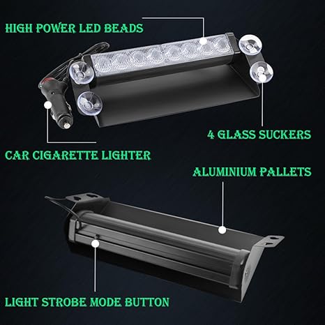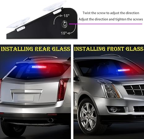 - EASY INSTALLATION: With 4 suction cups, no drilling, no cutting, mounts directly to your windshield or your dash with suction cups to hold the light in place.It can be freely installed on the front windshield,rear window to function as deck or dash strobe light.