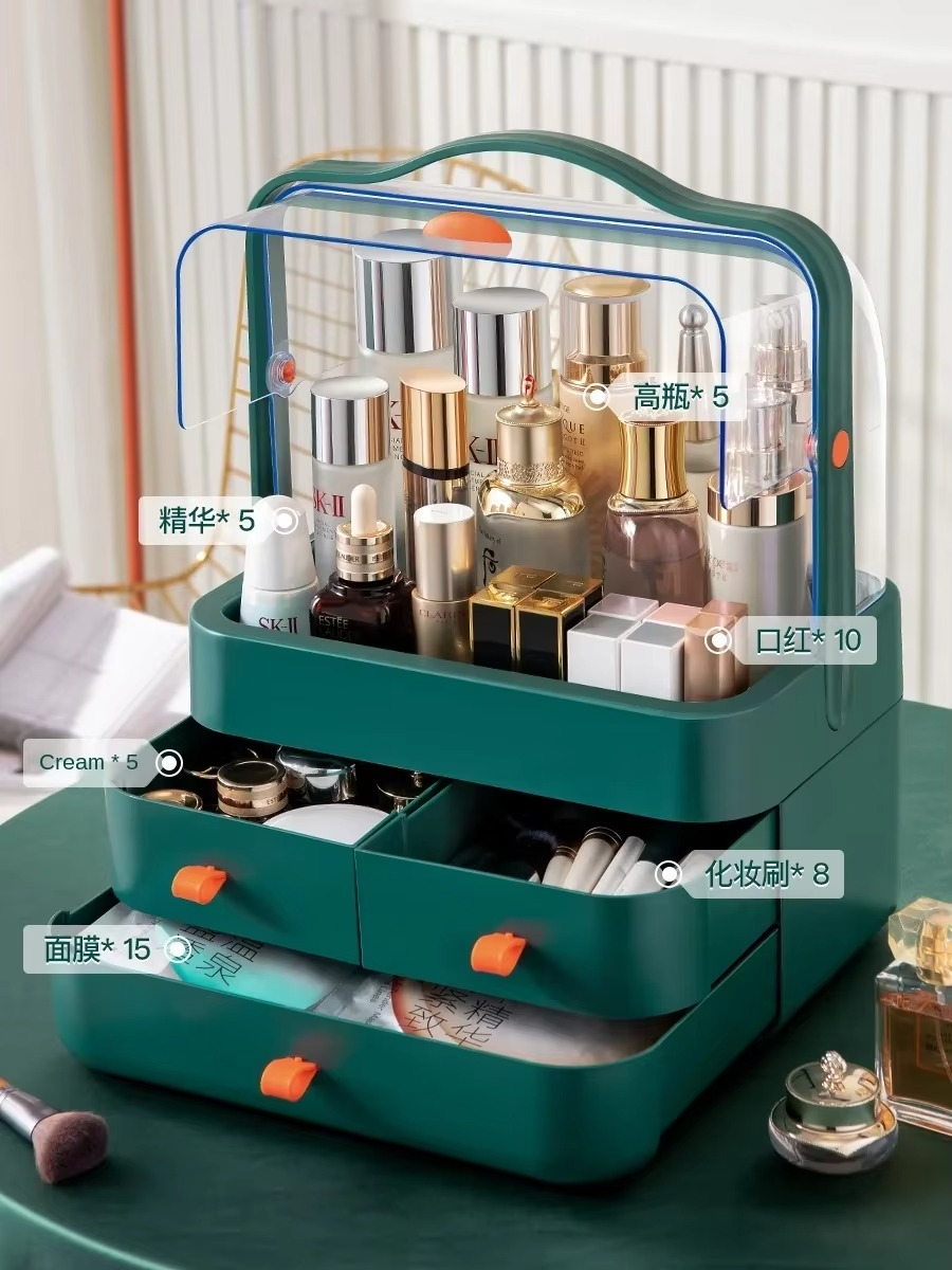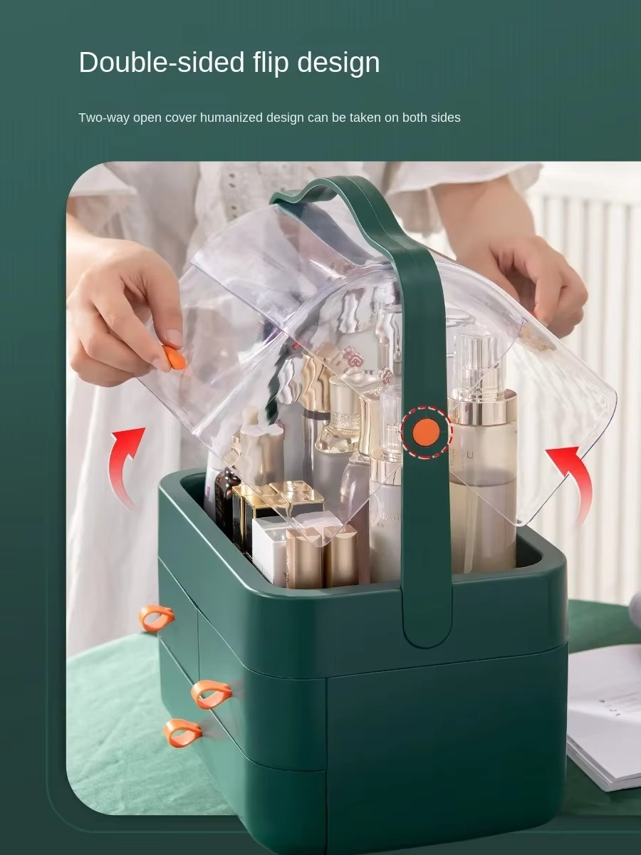 Save 70% space There is space to put things in the capacity. Large capacity That’s the ideal way It can also accommodate large cosmetics, tall bottles. The water bottle on the tall rack can be stored without being stuck or put in. Better to store makeup than a table for a neat and organized look. Portable design Two-way opening and closing Built-in drawer, portable It is waterproof and dustproof. It’s designed with convenience and durability in mind. Its portable design and two-way opening and closing allows it to be used almost anywhere. The built-in drawers ensures that your items are safely stored and dust free. This makes it the perfect tool for organizing your makeup while providing a neat and clean look.