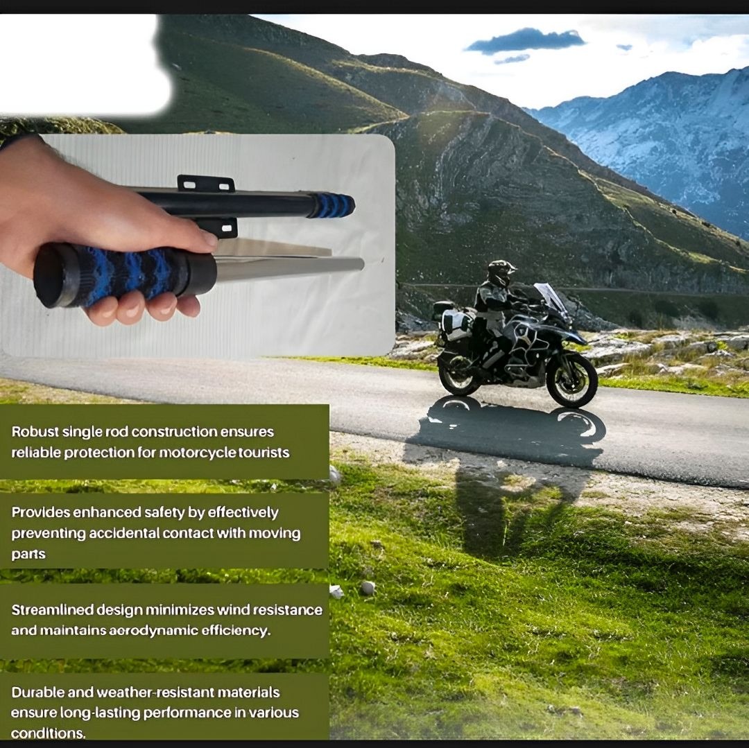 - Impact Absorption: The single rod design of the safety guard is specifically engineered to absorb and distribute impact energy in the event of a collision. It helps minimize the damage to the bike and reduces the risk of injuries to the rider.